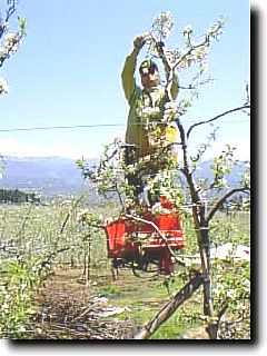 摘 花 開花するとまず受粉をして、その後一輪摘花(てっか)という作業をします。 |