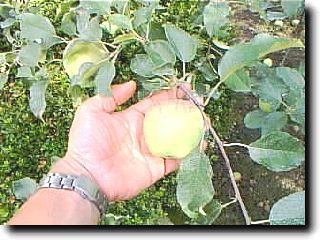 りんごの実 7月には、もうゴルフボールより大きくなります。(ふじ) |