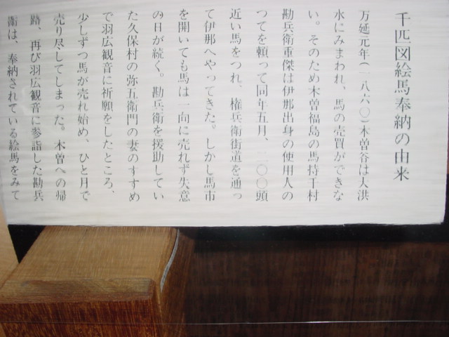 伊那市仲仙寺境内の市考古資料館で11月18日開催された1800年代の歴史のある。 「馬の観音様」 と言われる「仲仙寺」 絵馬の奉納者、絵師子孫紹介、絵馬を前に歴史親しむ。 奉納者氏名が記載された木札祖先の名を見つけて。。。