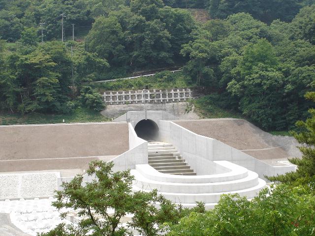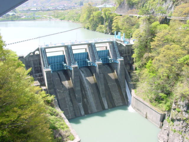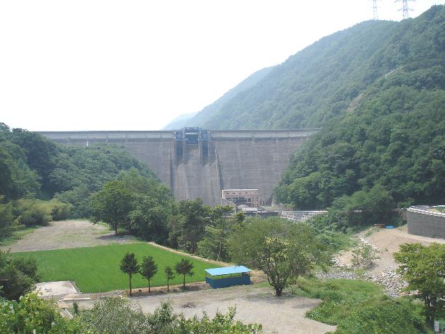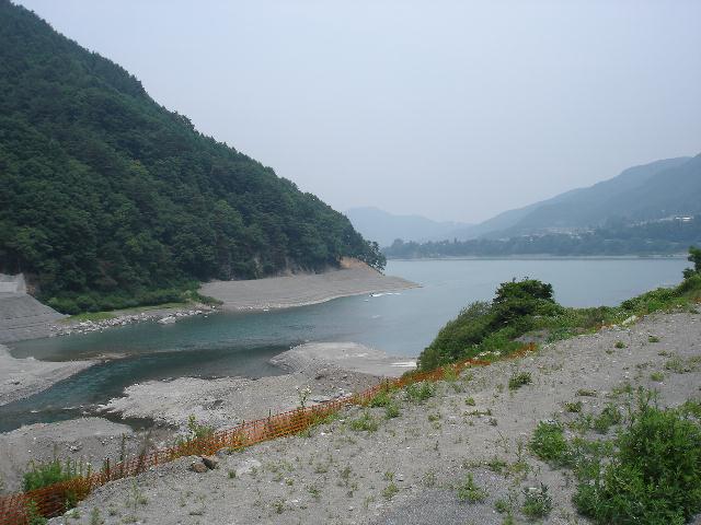 | ダム再生に初めて導入された導入水路抗。洪水時の土砂堆積を下流に流し ダムの堆積を防止延命を図る。 国内初めての施策。 下流の高遠ダムはどうなるだろう? 排水抗から僅かの距離で高遠ダム取り入れ口?(2005/07) |