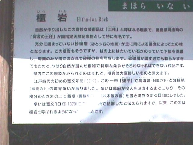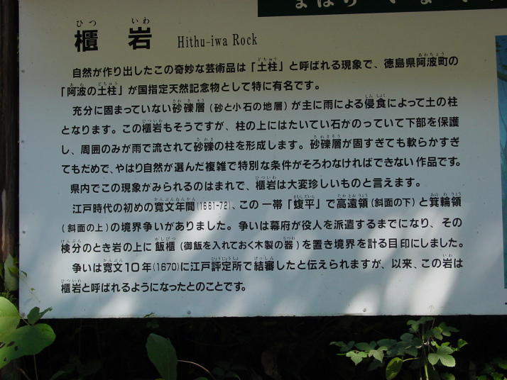 伊那市平沢地籍にある「ひついわ」長い年月で自然に雨で浸食されて出来たもの