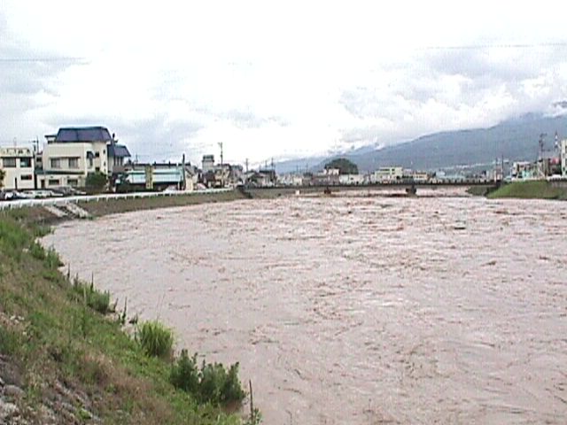 伊那市内の中央を流れる天竜川 中央橋下流 99,6,30撮 |