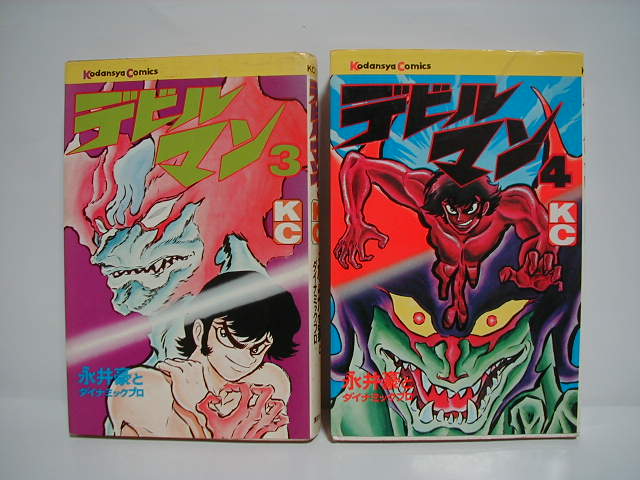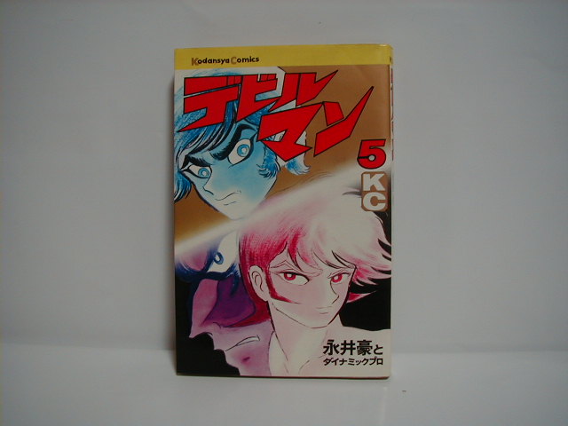 講談社KCコミック『デビルマン』。昭和47年〜48年にかけて発刊されたもの(その後何刷されたかは不明)。 近年このデザインで復刻されましたが、復刻版にはカバーに「復刻版」と印刷されています。 当時は「豪ちゃん」だった永井氏もいまでは「永井先生」です。