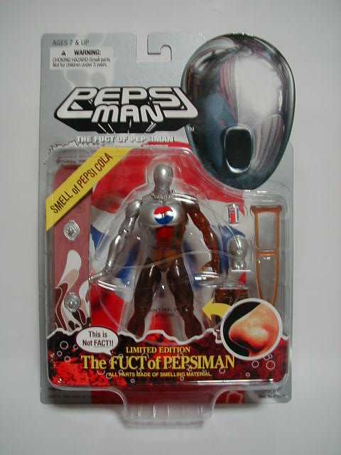 バンダイ フリーポーズ ペプシマン 3種。右のブラウンのフィギュアは、ペプシの匂いつき。