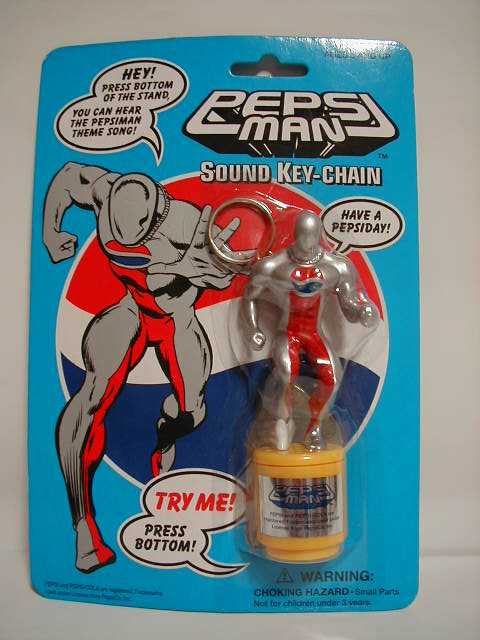ペプシマン サウンド キーチェーン。全長約10p。 スタンドの裏のスイッチを押すと、ペプシのあのテーマソングが流れます。 これってUS.Toyだと思うのですが、まぁここで紹介しておきます。