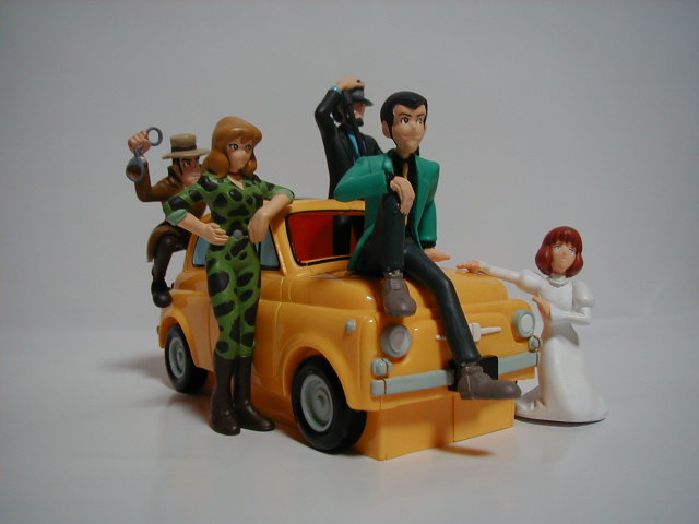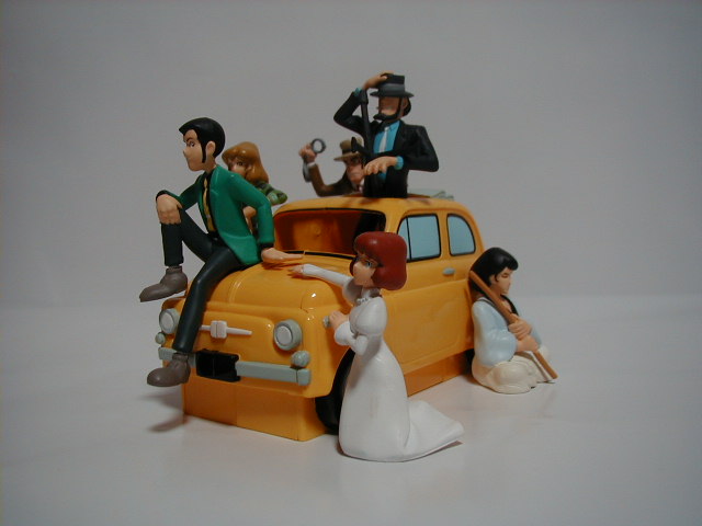 バンプレストのルパン カリオストロの城2 それぞれのキャラクターが6つのパーツに分かれていて、 全部揃うとフィアットが完成するというコレクター泣かせの一品。 すけさんもおおいに泣きました。