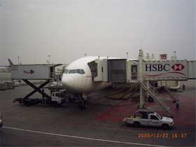 バンコクにほぼ定刻どおり到着したTG641便。このときのバンコクの気温21℃。曇り。いつもは28〜30℃くらいなのに、なんかバンコクにしては肌寒い感じ。 |