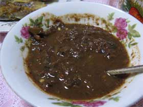 ガピ(エビ塩辛味噌) しょっぱ辛い味です。キュウリ以外にもいろんなものを浸けてたべます。 |