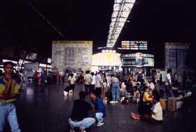 ファランポーン駅の待合室 改装前の待合室。タイ国鉄はDL中心なので、ディーゼルエンジン音がドーム内に響いて結構うるさい。 |