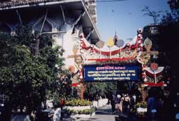 タイ国鉄のファランポーン駅正面 上野駅の長距離列車ホームみたいにターミナル駅である。このころは駅前に飲食系露天商が出現していたが、数年前にはほぼ姿を消していた。 |