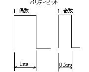 | パリティビット | データの1の個数・・・偶数ON0.5ms、奇数ON1ms |