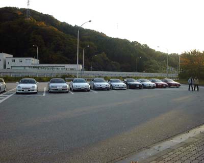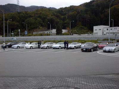 | 場所は北陸自動車道にある「境越中パーキングエリア」です。 掲示板で待ち合わせた時間に行くと、すでにみんな集まっていました。 ボクのは前にあるシルバーのプレリュードです。 |