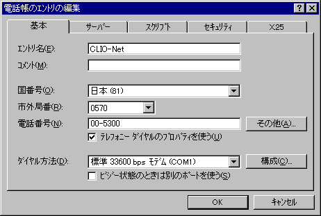 ■表示された「CLIO-Net への接続」ダイアログを、以下のように設定します。